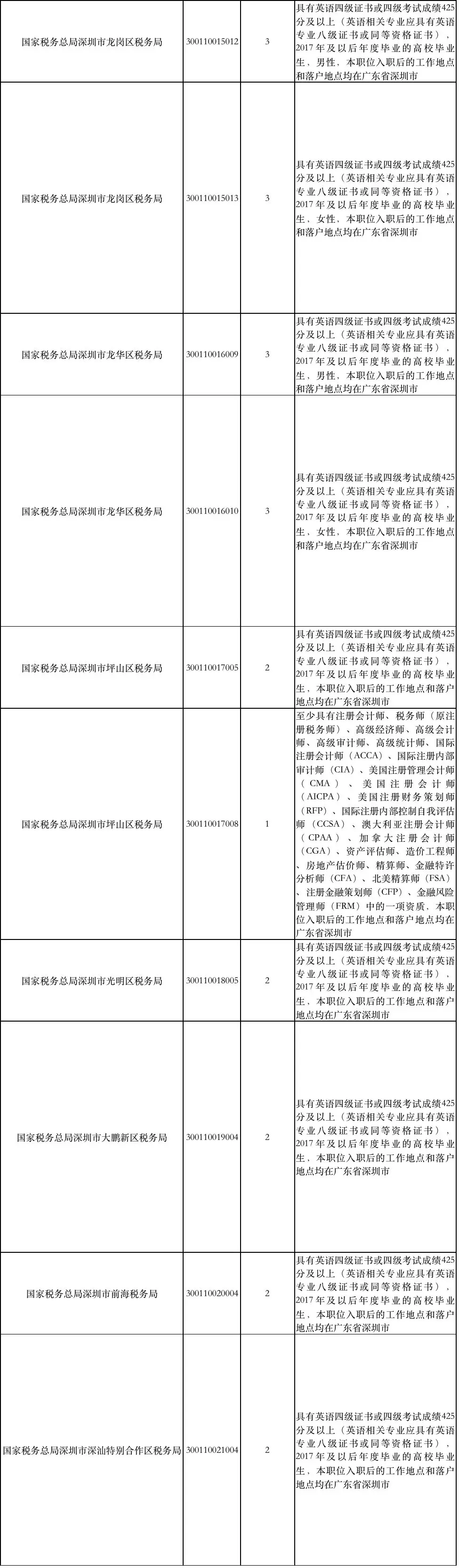 國家稅務(wù)總局深圳市稅務(wù)局補(bǔ)充錄用職位簡表: