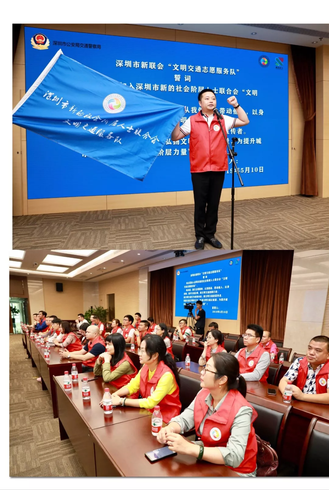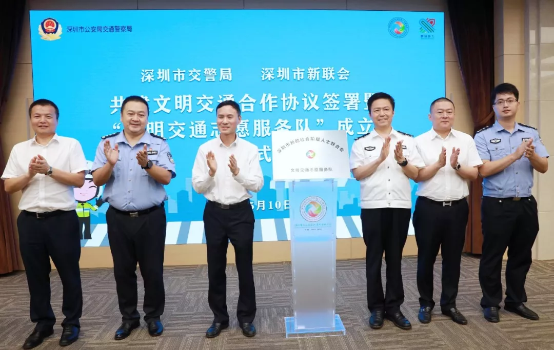 創(chuàng)文明交通城,做文明深圳人,新的社會階層人士在行動。5月10日,深圳市交警局與深圳市新的社會階層人士聯(lián)合會(市新聯(lián)會)成立“文明交通志愿服務(wù)隊”暨共建文明交通合作協(xié)議簽署儀式在深圳市公安局交通警察局舉行,市委統(tǒng)戰(zhàn)部常務(wù)副部長范坤,市交警局局長徐煒、副局長陳顯東,市政協(xié)常委、市新聯(lián)會會長馬少福等參加相關(guān)活動。