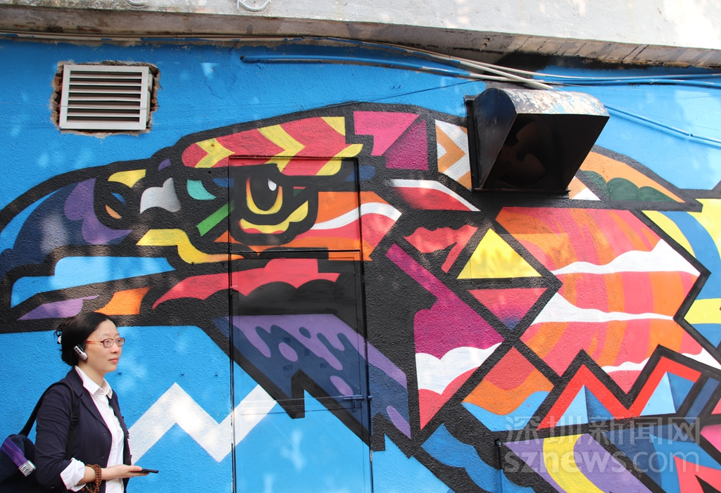來自泰國的平面設(shè)計(jì)師和街頭藝術(shù)家Rukkit Kuanhawate,常以抽象幾何設(shè)計(jì)畫出動(dòng)物及人像涂鴉作品,更曾與多個(gè)國際潮牌跨界合作。此次于深圳帶來作品《鷹與鼠》,以詼諧幽默的方式提醒車主安全停車。