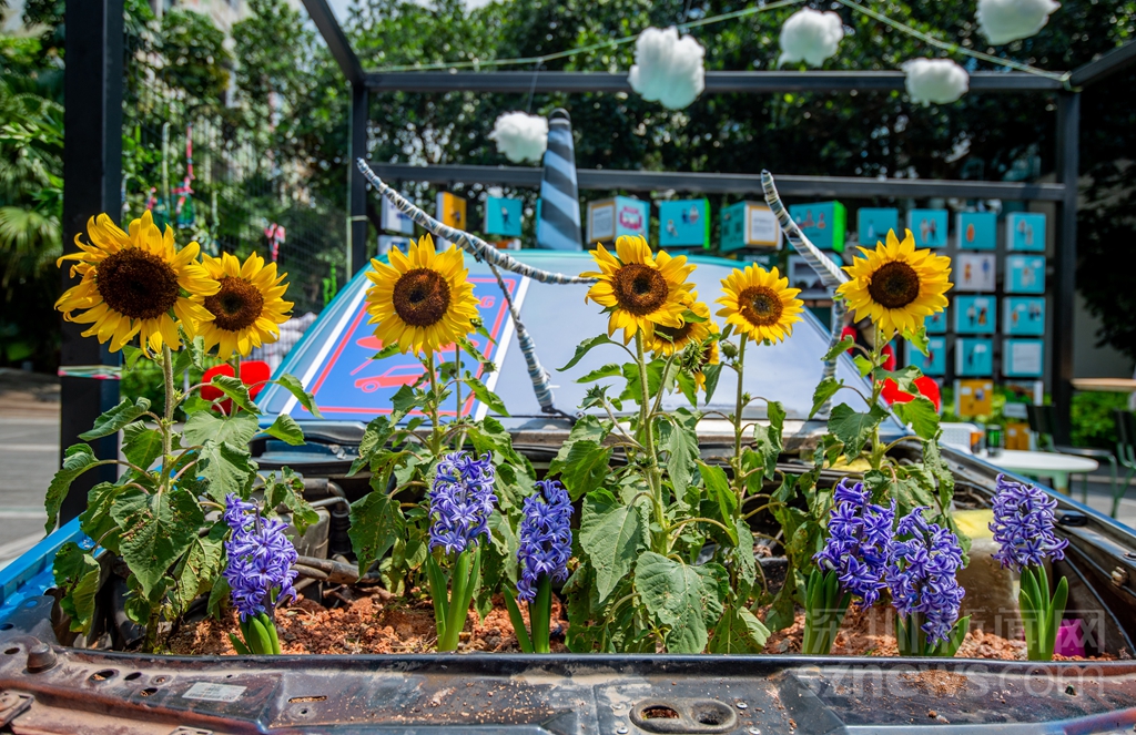 《一覽無Car》汽車引擎蓋空間變成向日葵微型花園(主辦方供圖)