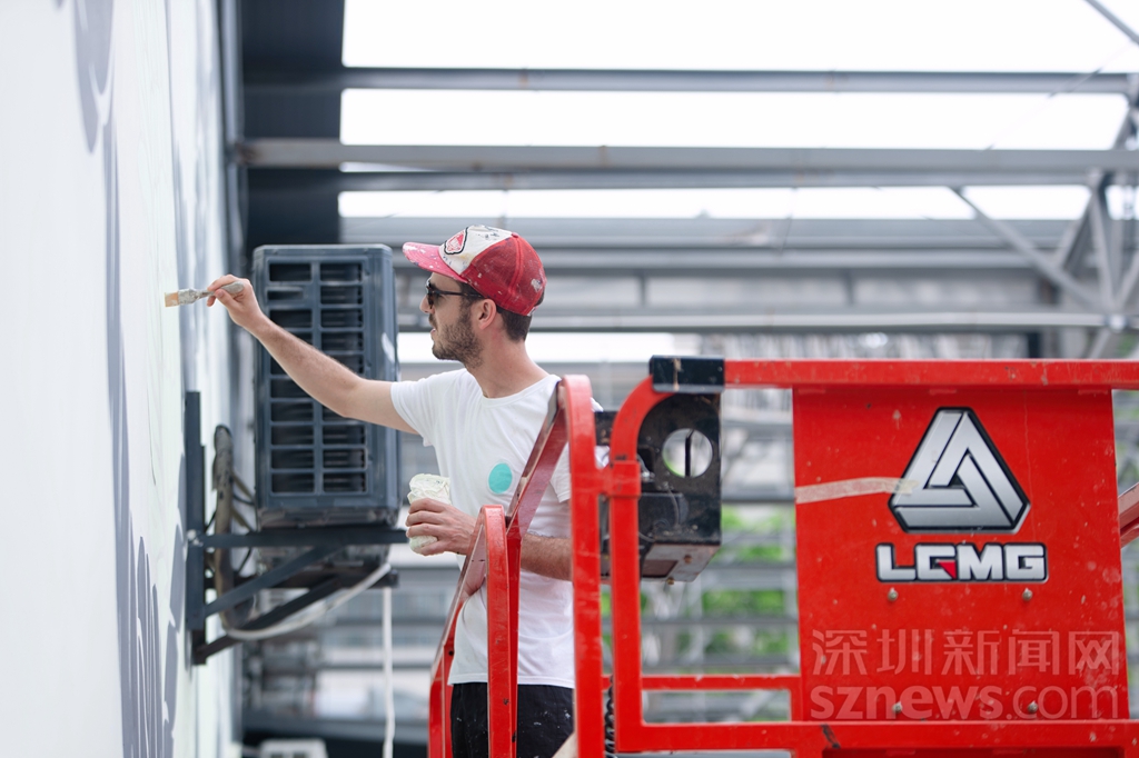 曾昭昶正在創(chuàng)作他的立體文字涂鴉作品《內(nèi)&外》(主辦方供圖)