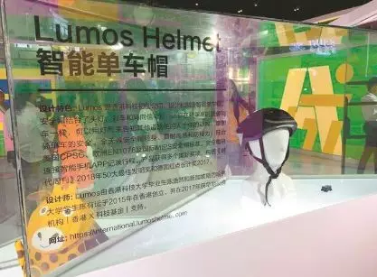 文博會(huì)現(xiàn)場展示的智能單車帽。晶報(bào)記者 吳欣/ 攝