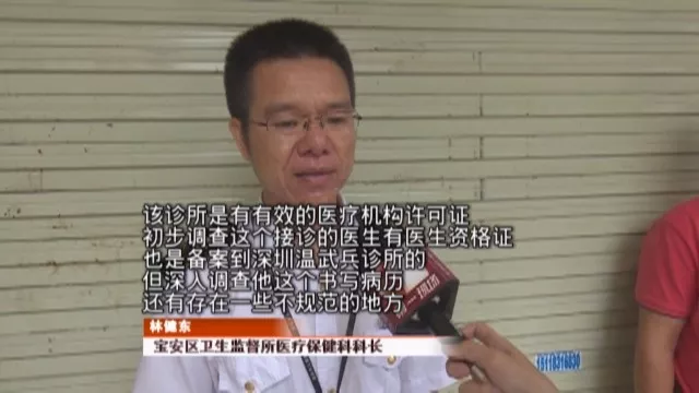 隨后,寶安區(qū)衛(wèi)生監(jiān)督所工作人員也趕到現(xiàn)場,醫(yī)療保健科科長林健東表示,當時死者注射的是,生理鹽水、克林霉素以及地塞米松,事發(fā)之后,他們已經(jīng)立即派出監(jiān)督員來診所調查。