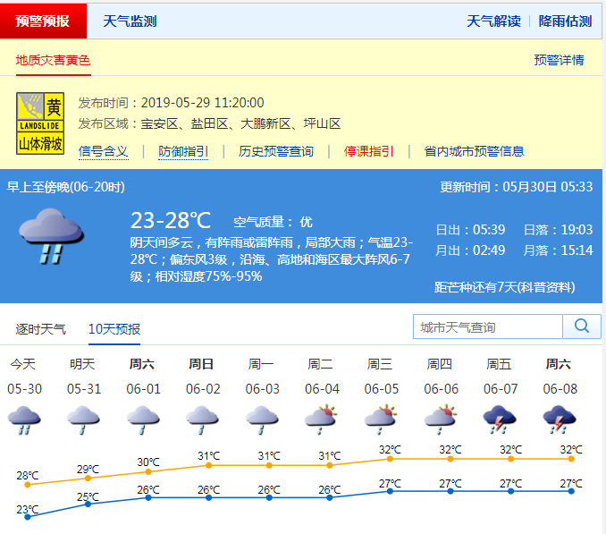 深圳新聞網(wǎng)5月30日訊 從上周開(kāi)始,天氣預(yù)報(bào)就不斷提示:小雨、雷陣雨、暴雨。掐指一算,“龍舟水”又到了。深圳市氣象臺(tái)預(yù)計(jì),31日-6月3日,多云間陰天,有中到大雨。深圳人,你們最近可能真的需要一艘船!