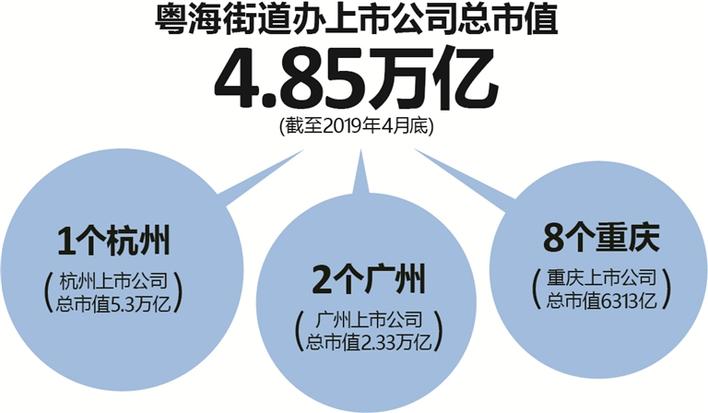 有媒體統(tǒng)計(jì)顯示,在粵海街道這個(gè)開車10分鐘就能逛一圈的“彈丸之地”,有112家公司屬于粵海街道辦,包括4月底市值超過3萬億元人民幣的騰訊控股,中國恒大、華潤置地、騰訊音樂、邁瑞醫(yī)療、中興通訊等5家千億市值公司,以及大族激光、深信服、金蝶國際等近20家百億市值公司。截至到今年4月底,A股、H股和美股上市的深圳市粵海街道辦上市公司有多達(dá)112家,總市值達(dá)到了4.85萬億元,而杭州市全市的上市公司總市值為5.3萬億元。