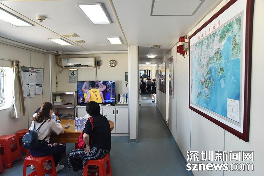 海監(jiān)船內(nèi)部休息區(qū),有電視節(jié)目可供觀看