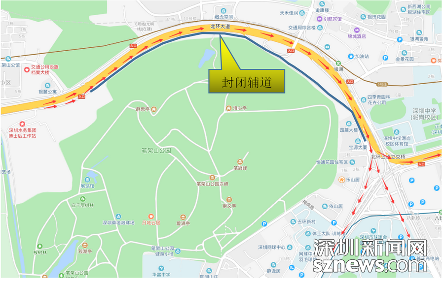 @深圳司機(jī),夜間北環(huán)上步立交段東行主輔道輪流封閉