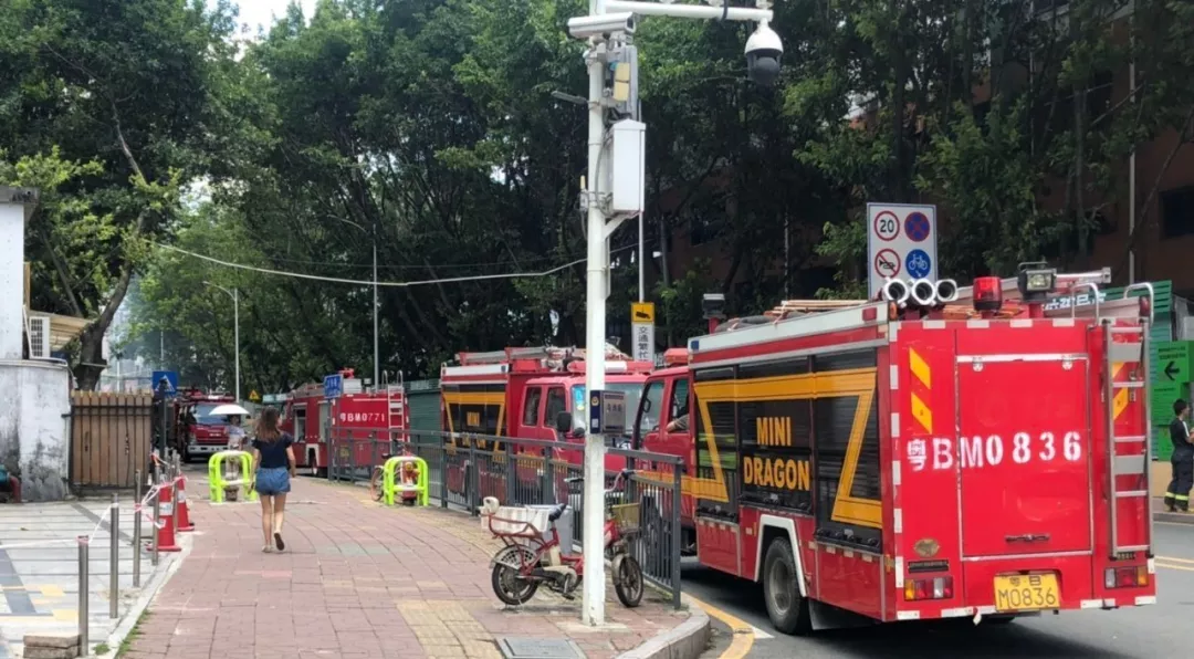 路邊停滿了消防車(chē)