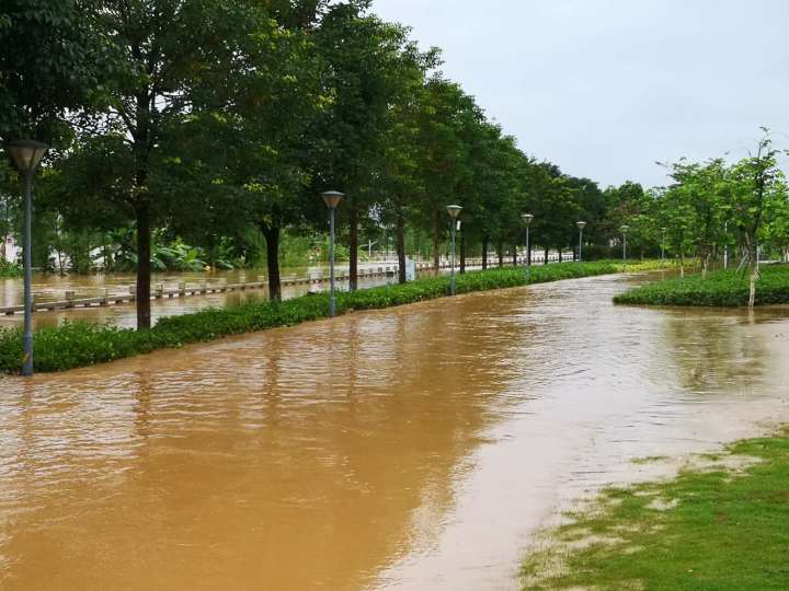 龍川楓樹壩洪峰到達市區(qū),東江灣公園已拉起警戒線