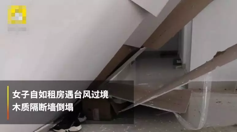 2018年9月臺(tái)風(fēng)“山竹”登陸期間,市民姚女士租住的自如公寓里,一面隔斷墻突然倒塌,墻卸下來里面就是很簡(jiǎn)單的木板。經(jīng)過幾個(gè)月協(xié)商,自如在2019年1月,賠償姚女士近5千元。