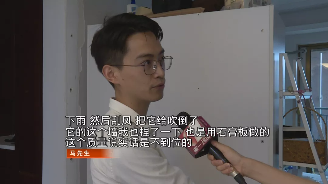 昨天上班的時(shí)候,馬先生沒有關(guān)上陽(yáng)臺(tái)門,沒料到房間的隔墻竟然被大風(fēng)直接給吹翻了。