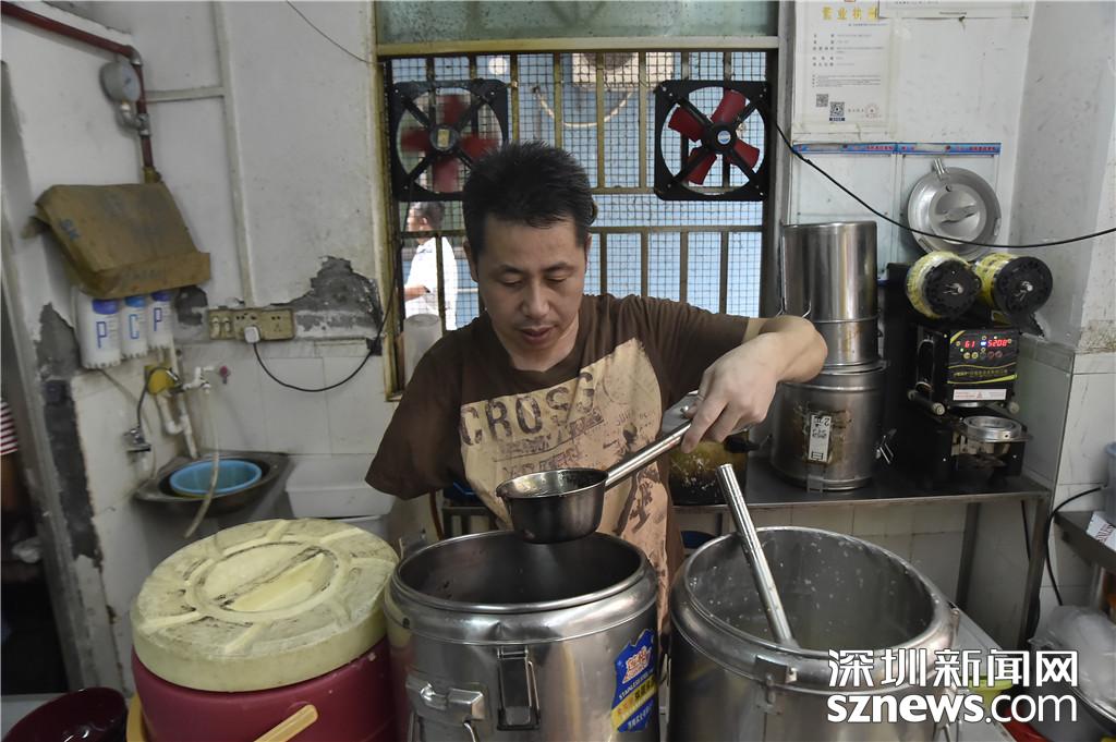 陳用發(fā)正在為顧客打粥