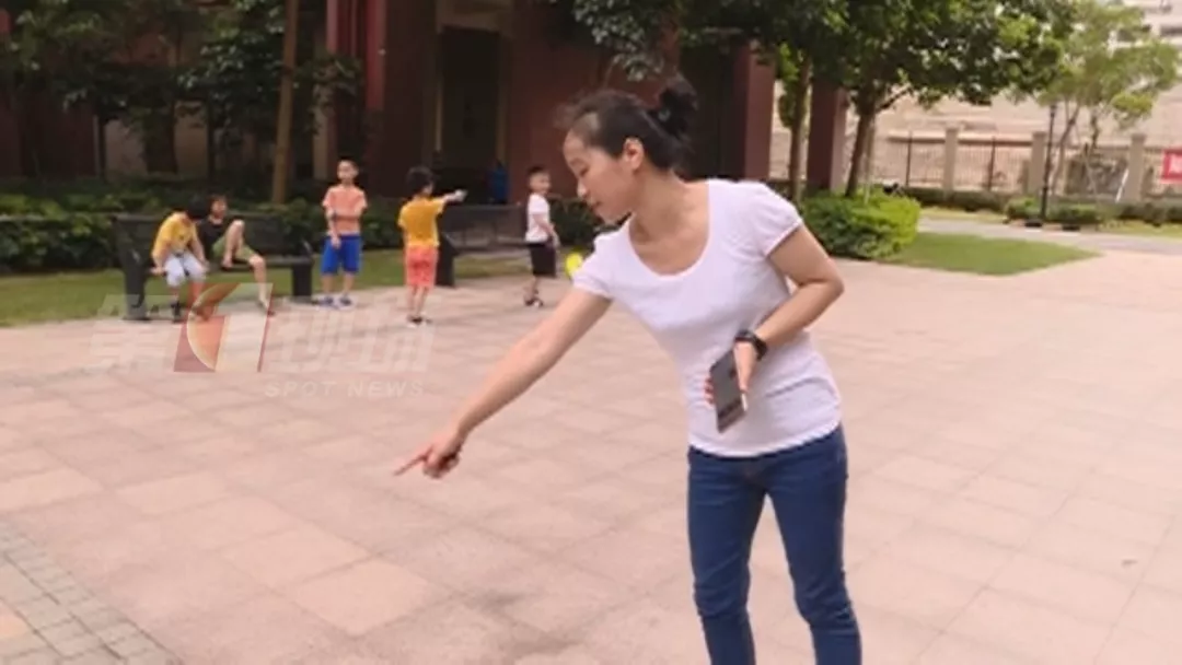 她正帶著兒子在樓下的廣場活動(dòng)