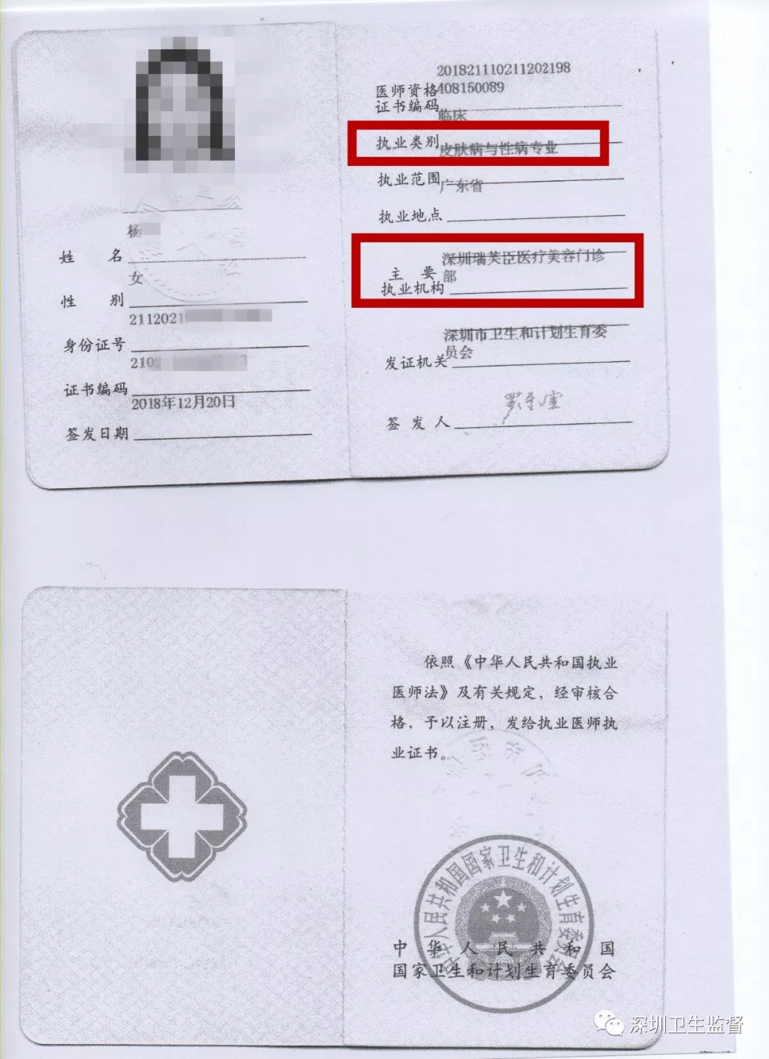皮膚科專業(yè)主診醫(yī)師相關(guān)證件