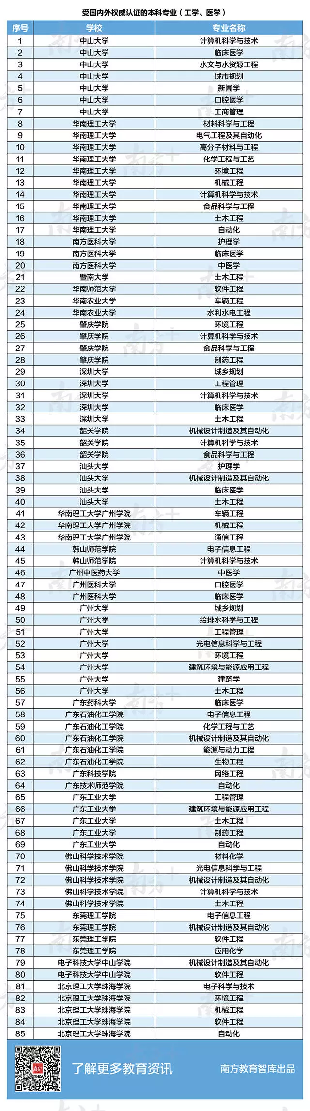 統(tǒng)計(jì)工學(xué)類和醫(yī)學(xué)類專業(yè)發(fā)現(xiàn),廣東共有85個(gè)專業(yè)獲得國(guó)內(nèi)外認(rèn)證,其中華南理工大學(xué)10個(gè)、廣州大學(xué)8個(gè)、中山大學(xué)7個(gè),位居全省前3位,理科考生可以作為參考。