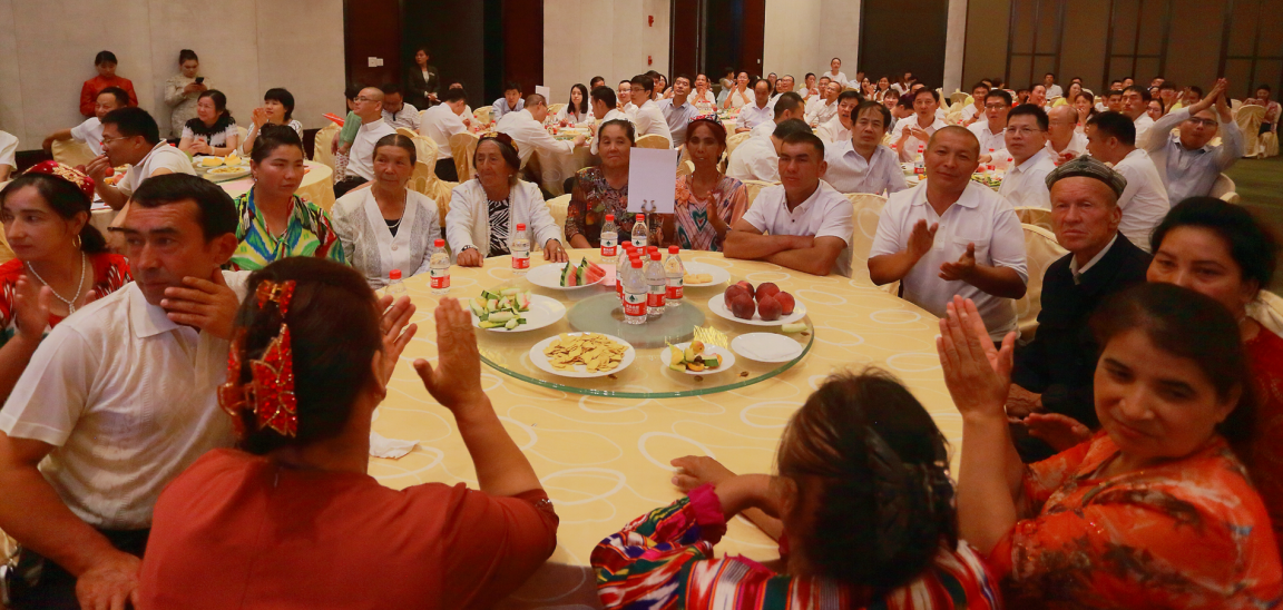 深圳援疆前方指揮部副總指揮袁富勇同志、黨委委員黃東、王漢偉同志和各處(室)、組、隊負(fù)責(zé)同志(代表)與帕鄉(xiāng)結(jié)親戶代表一同上臺,互贈禮物。