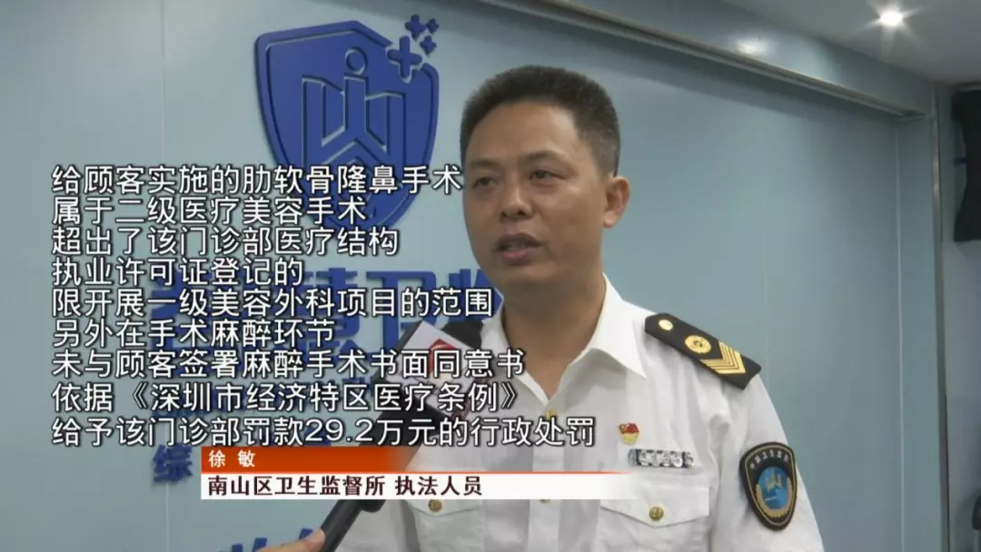 之前,林女士也將情況反映到南山區(qū)衛(wèi)生監(jiān)督所,執(zhí)法人員也到場(chǎng)對(duì)整個(gè)手術(shù)過(guò)程進(jìn)行了詳細(xì)調(diào)查。整個(gè)手術(shù)過(guò)程,恩吉娜醫(yī)療門診部是否真的存在違規(guī)操作呢?記者也聯(lián)系了南山區(qū)衛(wèi)生監(jiān)督所。