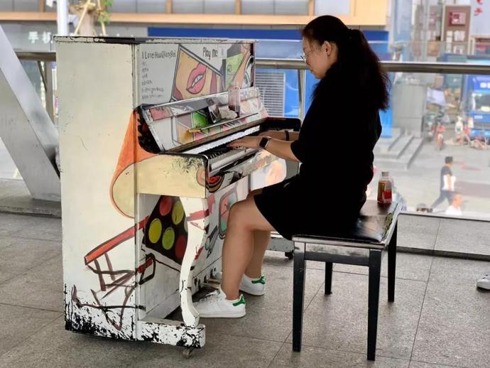 華強北街頭還擺放了公共鋼琴可供免費彈奏
