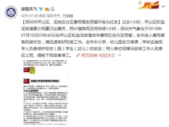 深圳氣象局官方微博7月10日7時(shí)39分發(fā)布信息