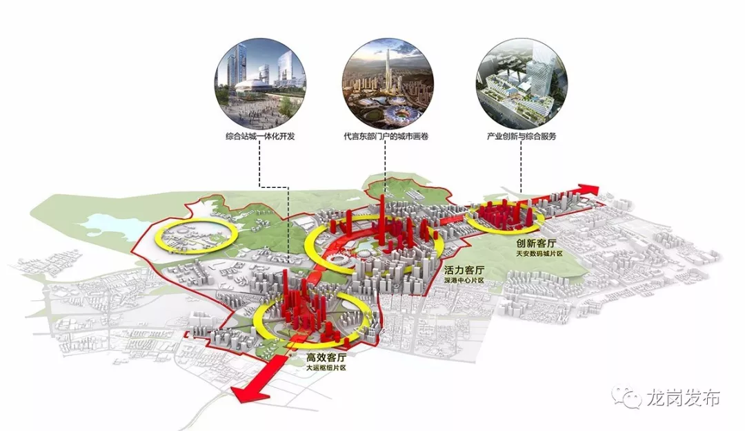 “三心”為“一主兩副”三個(gè)城市客廳,即主客廳“中部活力客廳”,副客廳“北部創(chuàng)新客廳”和“南部高效客廳”。