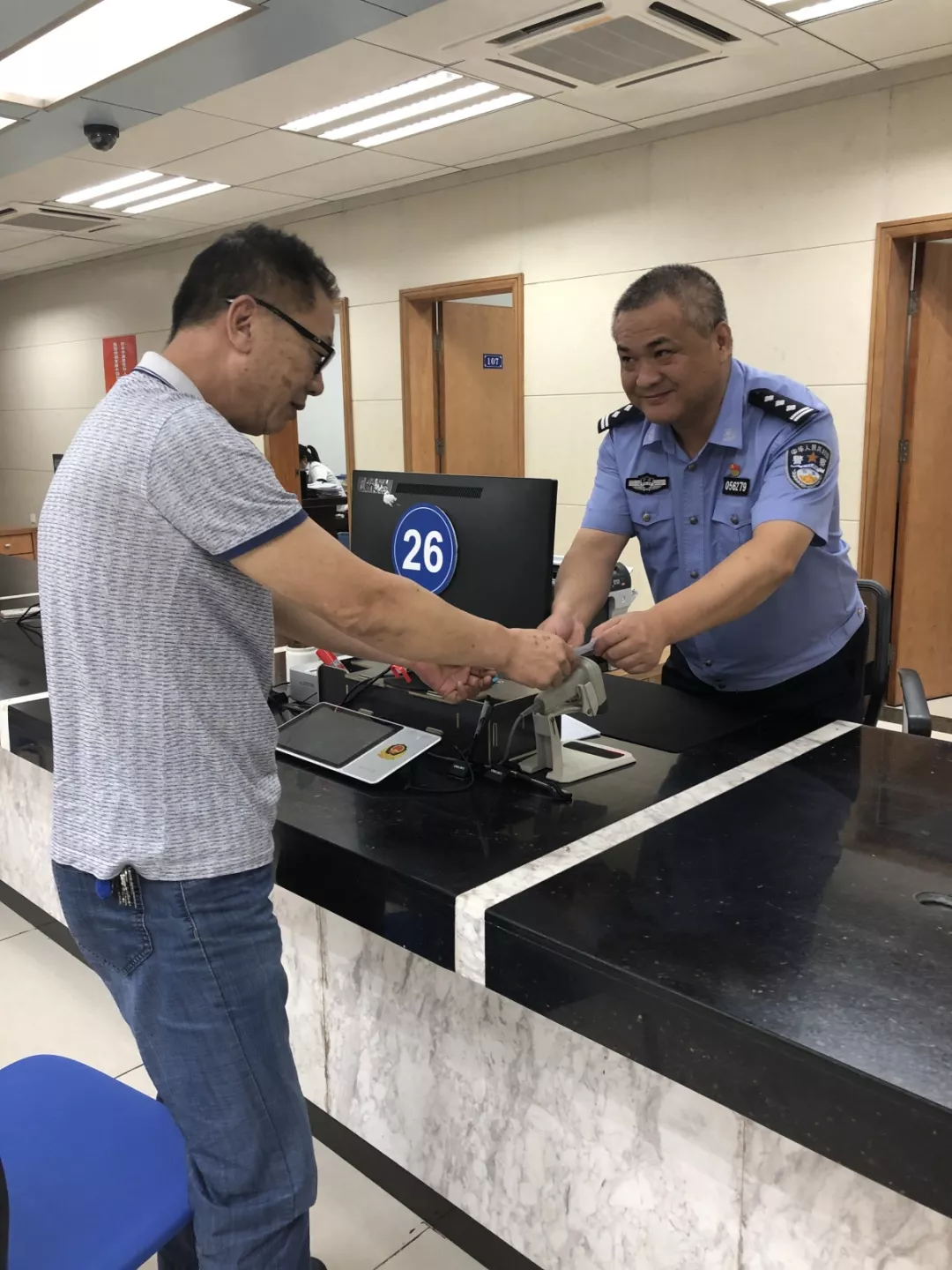 看著快急哭了的學(xué)生和家長,人口管理科民警杜朝陽立刻行動起來,啟動“綠色通道”,同時和聲細語地安慰道:“孩子別擔(dān)心,我們今天一定給你補好證件,保證不耽誤你考試!”