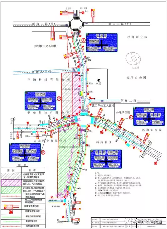 松坪站是13號線與24號線(規(guī)劃中)的換乘站。車站南接科興站,北接西麗火車站,總長308.1米。本次松坪站第一階段交通疏解主要施工內(nèi)容包括:綠化遷移、管線遷改、新建臨時道路、交通設施的拆除及新建。