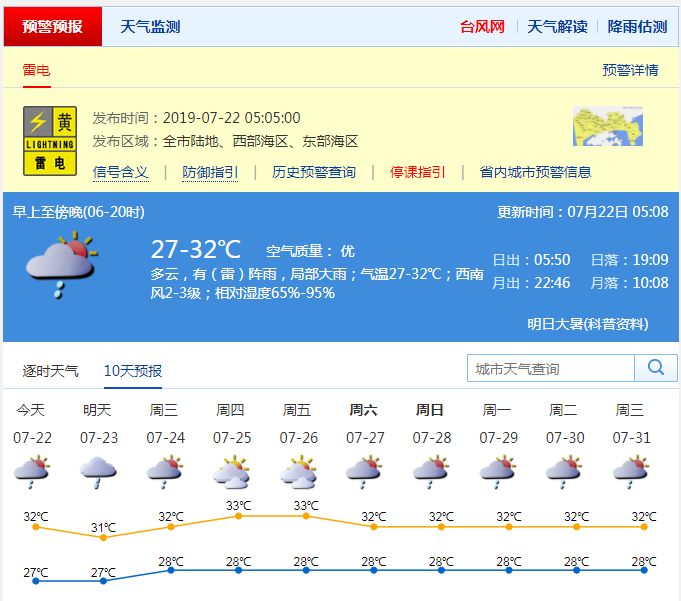 深圳新聞網2019年7月22日訊 炎熱與局地陣雨是近日深圳天氣的主題。據(jù)市氣象局預計,未來兩天我市依然陽光陣雨相伴,部分時間雨勢較大。其中,22日多云,有(雷)陣雨,局部大雨;27-32℃;西南風2-3級;濕度65%-95%。預計23-24日有(雷)陣雨,局部大雨;25-26日天氣炎熱,有局地短時陣雨。