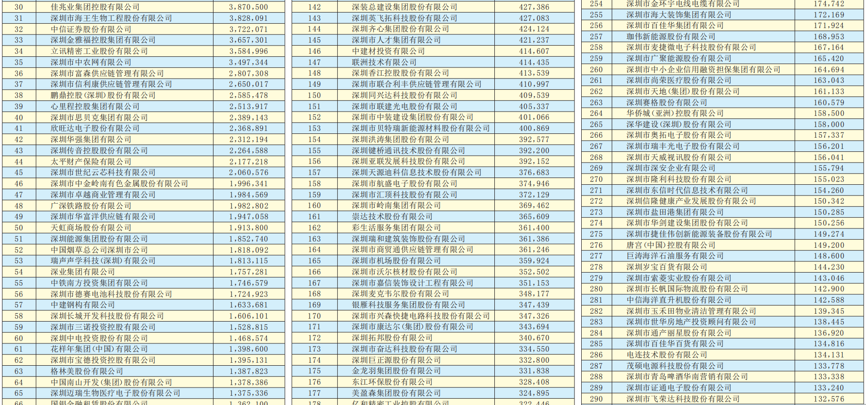 原標(biāo)題:“2019深圳500強(qiáng)企業(yè)”今日公示 按營(yíng)業(yè)收入排序,中國(guó)平安保險(xiǎn)(集團(tuán))股份有限公司、華為投資控股有限公司、正威國(guó)際集團(tuán)有限公司居前三