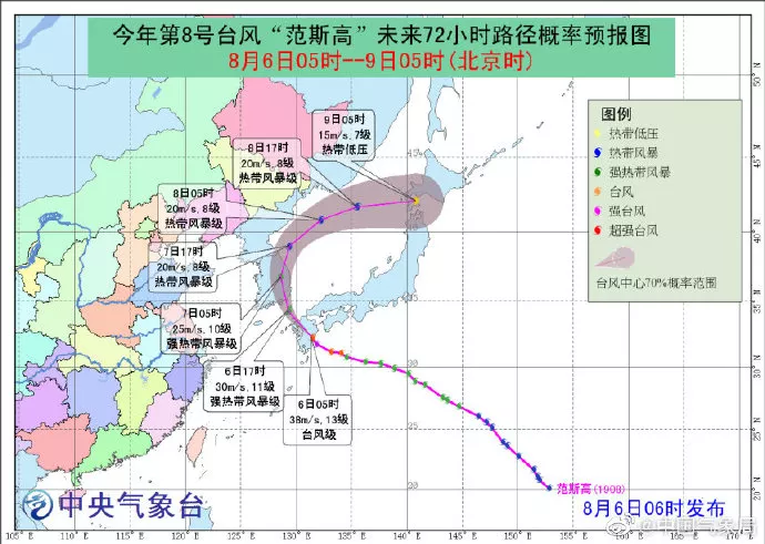 預(yù)計,“范斯高”將以每小時25-30公里的速度繼續(xù)向西北方向移動,將于今天晚上再次登陸韓國南部,爾后逐漸轉(zhuǎn)向東北方向移動,強度逐漸減弱。