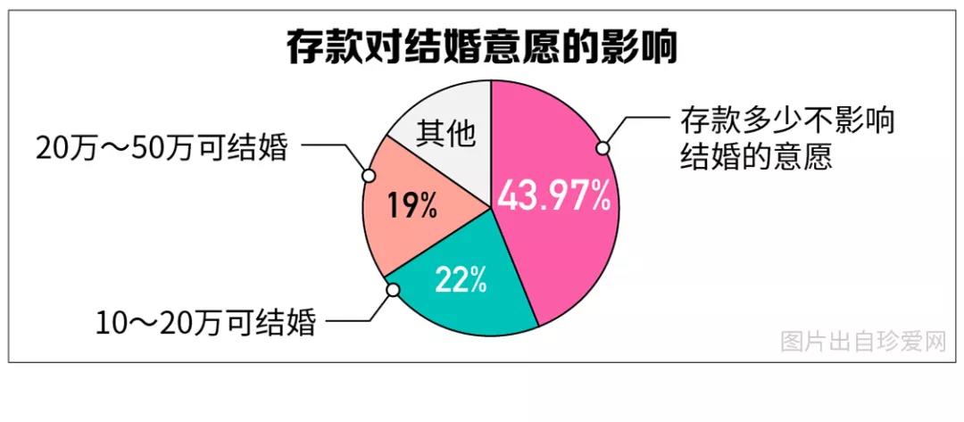 調(diào)查顯示,近7成90后單身青年認(rèn)為經(jīng)濟(jì)水平不是唯一重要的擇偶標(biāo)準(zhǔn)。近半數(shù)(43.97%)90后認(rèn)為存款多少不影響結(jié)婚的意愿;其中,男生(53.87%)認(rèn)為存款多少不影響結(jié)婚的比例高于女性(37%)。在結(jié)婚籌備上,女性對(duì)經(jīng)濟(jì)的考量多過男性。