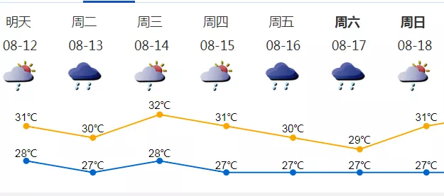 11日多云,有(雷)陣雨,氣溫28-32℃;
