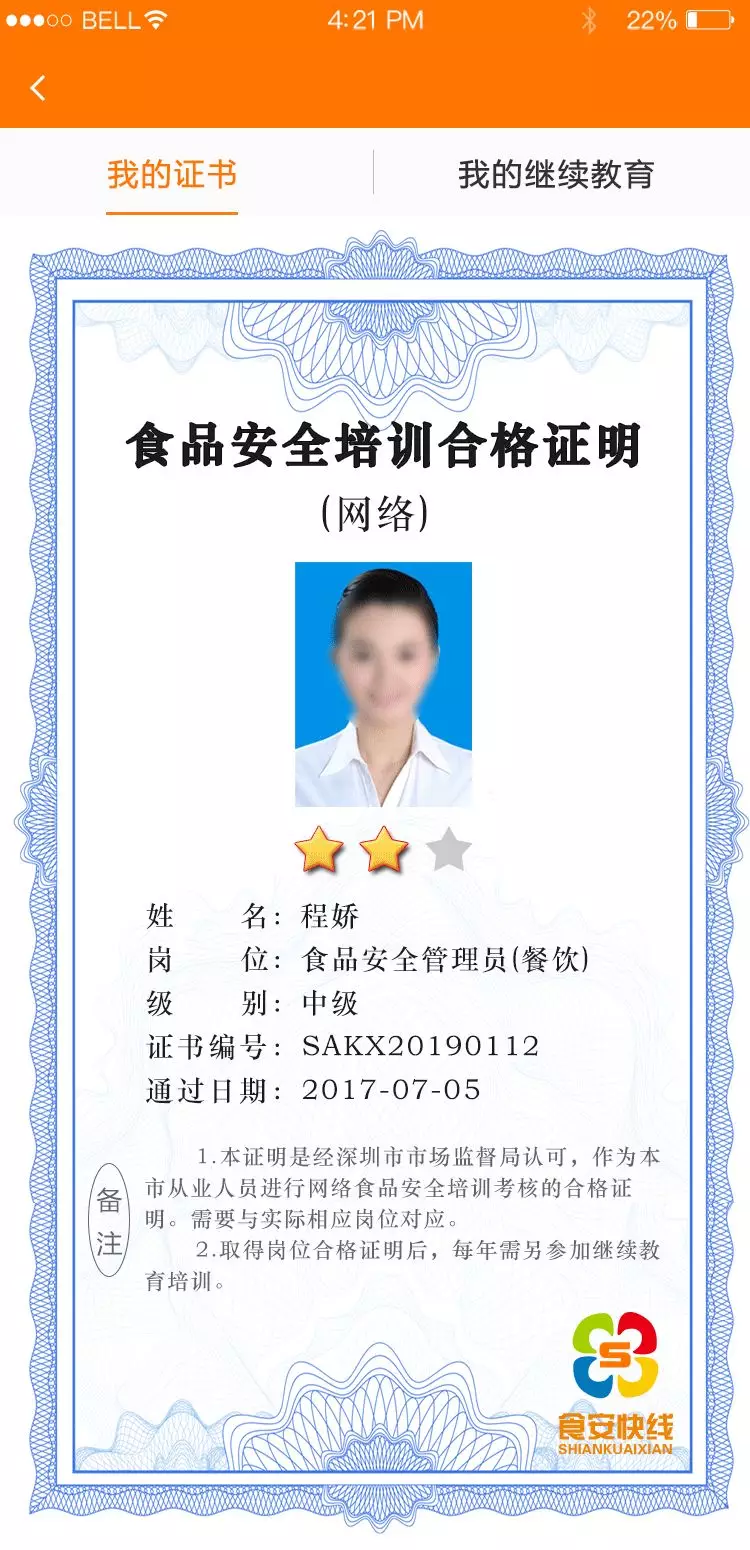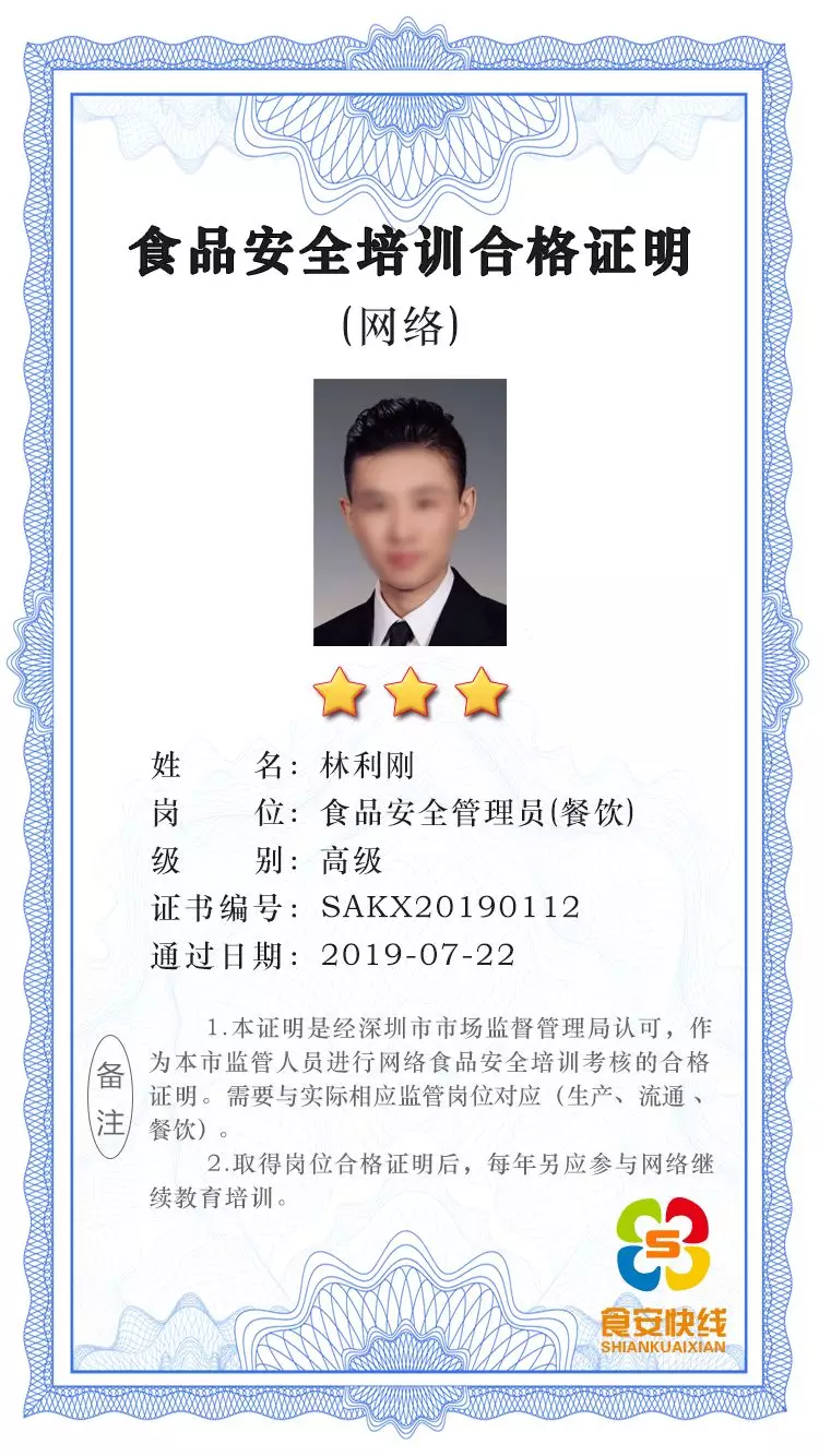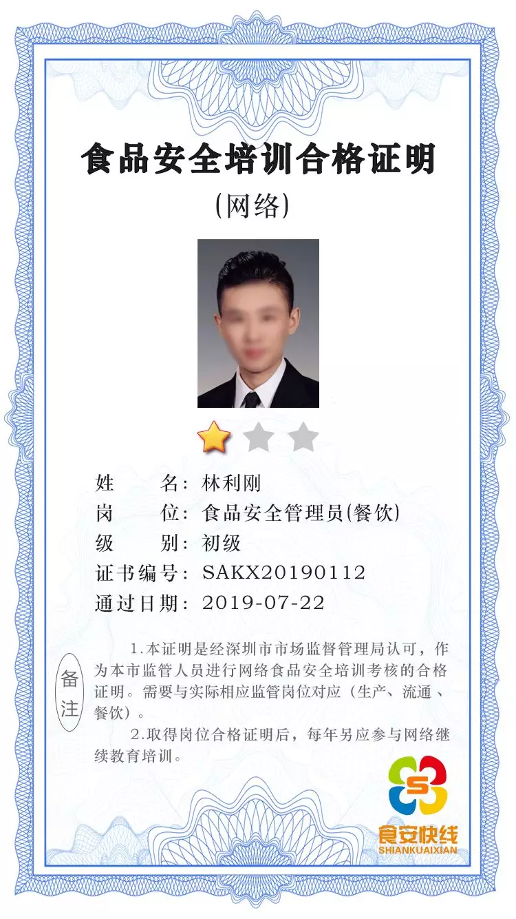 首先:食品安全管理員應取得崗位“培訓合格證明”;