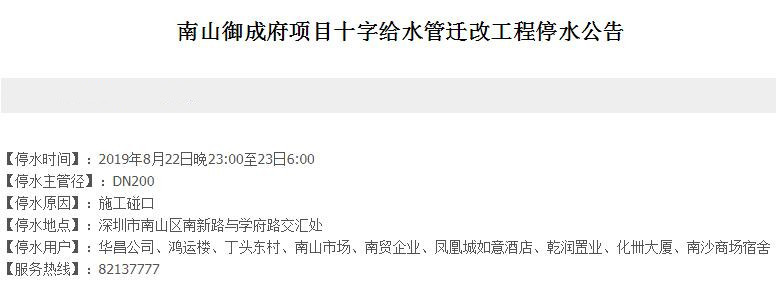 今日停水安排!羅湖、南山這些片區(qū)請?zhí)崆白龊脺?zhǔn)備