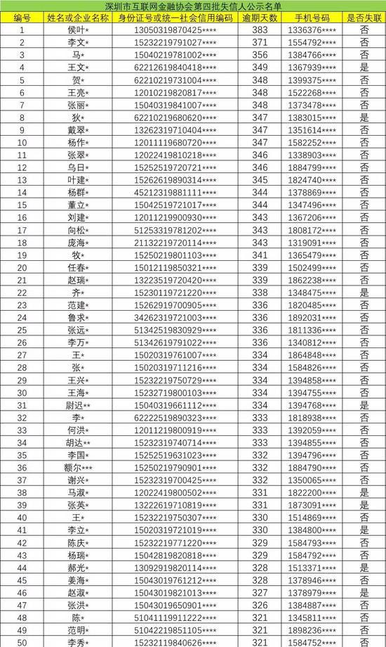 原標(biāo)題:深圳第四批網(wǎng)貸失信人黑名單公布!有你認(rèn)識的嗎?