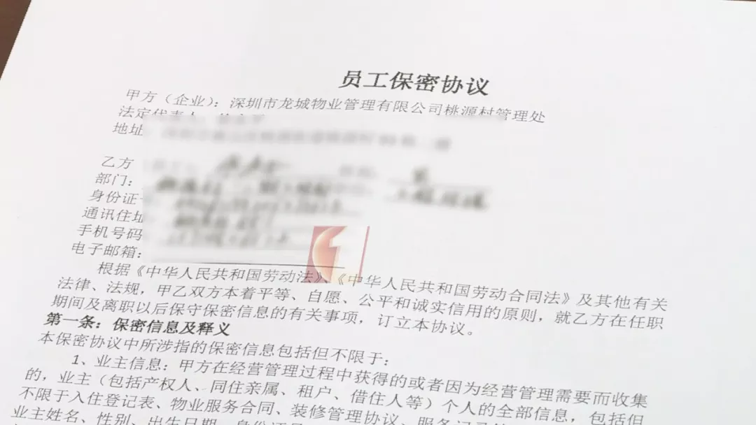 管理處提供了公司和這兩位員工在幾年前簽訂的保密協(xié)議,丁某某為客戶部高級經(jīng)理,官某某為工程部經(jīng)理,保密協(xié)議中第一條就是業(yè)主信息的隱私保護。