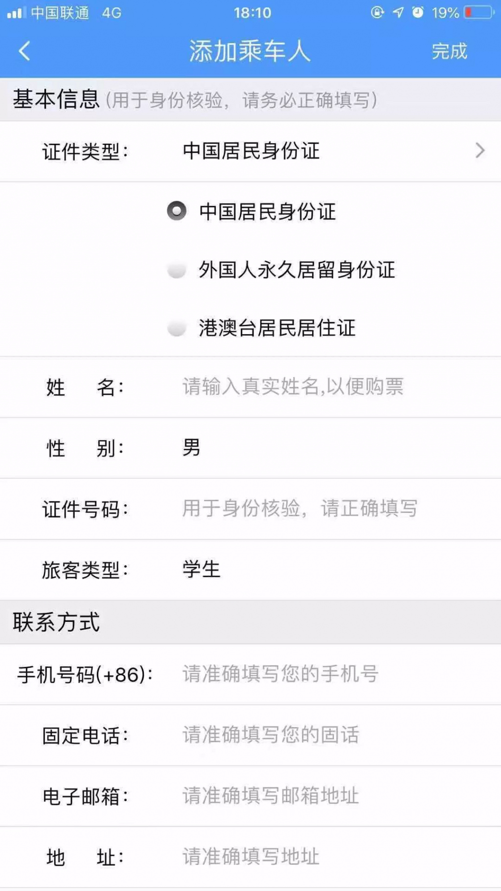 在常用聯(lián)系人中添加乘車人