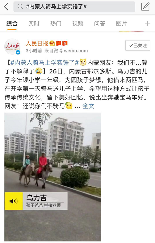 據(jù)說內蒙人騎馬上學