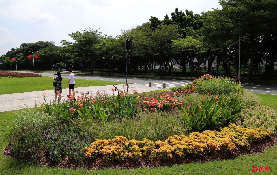 除了花帶,市城市管理和綜合執(zhí)法局還在深南大道行人過馬路的地方新打造了10個(gè)花園路口,每個(gè)小花園5-10平方米,結(jié)合原有路口的景觀設(shè)計(jì),融入海綿生態(tài)理念,增加蜜源、觀花和色葉植物,組合成花境,讓在路口等紅綠燈的市民能欣賞到深圳的自然之美。