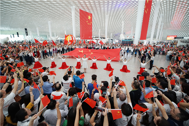 機場航站樓成“紅色海洋” 他們以這種方式慶祝新中國成立70周年