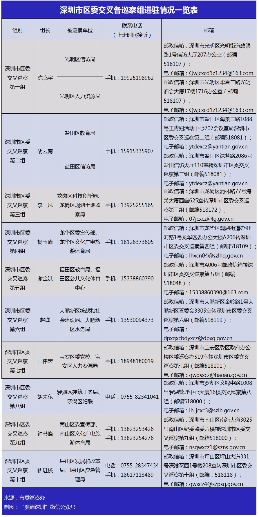 此外,2019年第二輪區(qū)級(jí)交叉巡察進(jìn)駐也已全部完成。10個(gè)交叉巡察組將對(duì)福田區(qū)教育局黨組等20個(gè)單位黨組織開展異地(跨區(qū))交叉巡察。