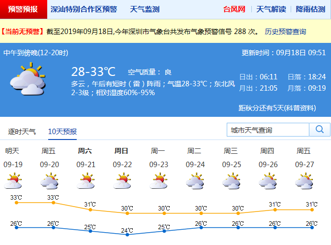 見圳客戶端·深圳新聞網(wǎng)2019年9月18日訊 你期盼的降溫就要到來了。來自氣象臺的消息,本周末21日起,北風(fēng)加大,深圳氣溫會有下降。