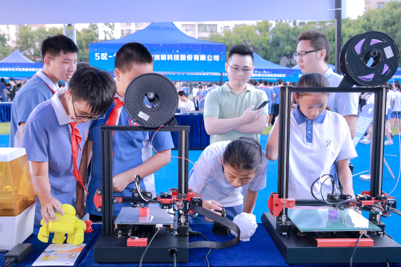 據(jù)了解,“禮贊共和國,智慧新生活”是今年全國科普日的主題。本次全國科普日寶安區(qū)活動分為航天科技裝備、太空知識長廊、氫能轉(zhuǎn)化實驗、 VRAR活動體驗、寶安區(qū)科普教育基地介紹等五個版塊,呈現(xiàn)出航天科技與太空知識相結(jié)合的科普盛宴。除此之外,深圳市洲明科技股份有限公司帶來了智慧路燈及節(jié)能系統(tǒng)的介紹;深圳市愛能特科技有限公司的3D打印讓學(xué)生們大開眼界,想像的物品只要設(shè)計出來就能打??;韓端科技 (深圳)有限公司帶來的機器人舞蹈揮舞著國旗震撼了全場……操場上、實驗室里處處散發(fā)出著科技的魅力。