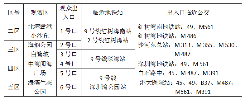 3.觀賞區(qū)域。深圳灣公園南側(cè)設二、三、四、五觀賞區(qū),具體區(qū)域見示意圖: