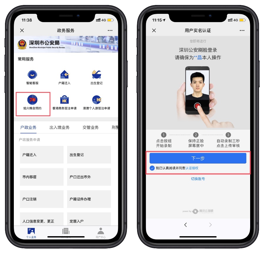1.關(guān)注“深圳公安”微信公眾號,選擇“民生”欄,點(diǎn)擊焰火晚會預(yù)約,通過人臉認(rèn)證后即可進(jìn)入預(yù)約頁面,如下圖所示: