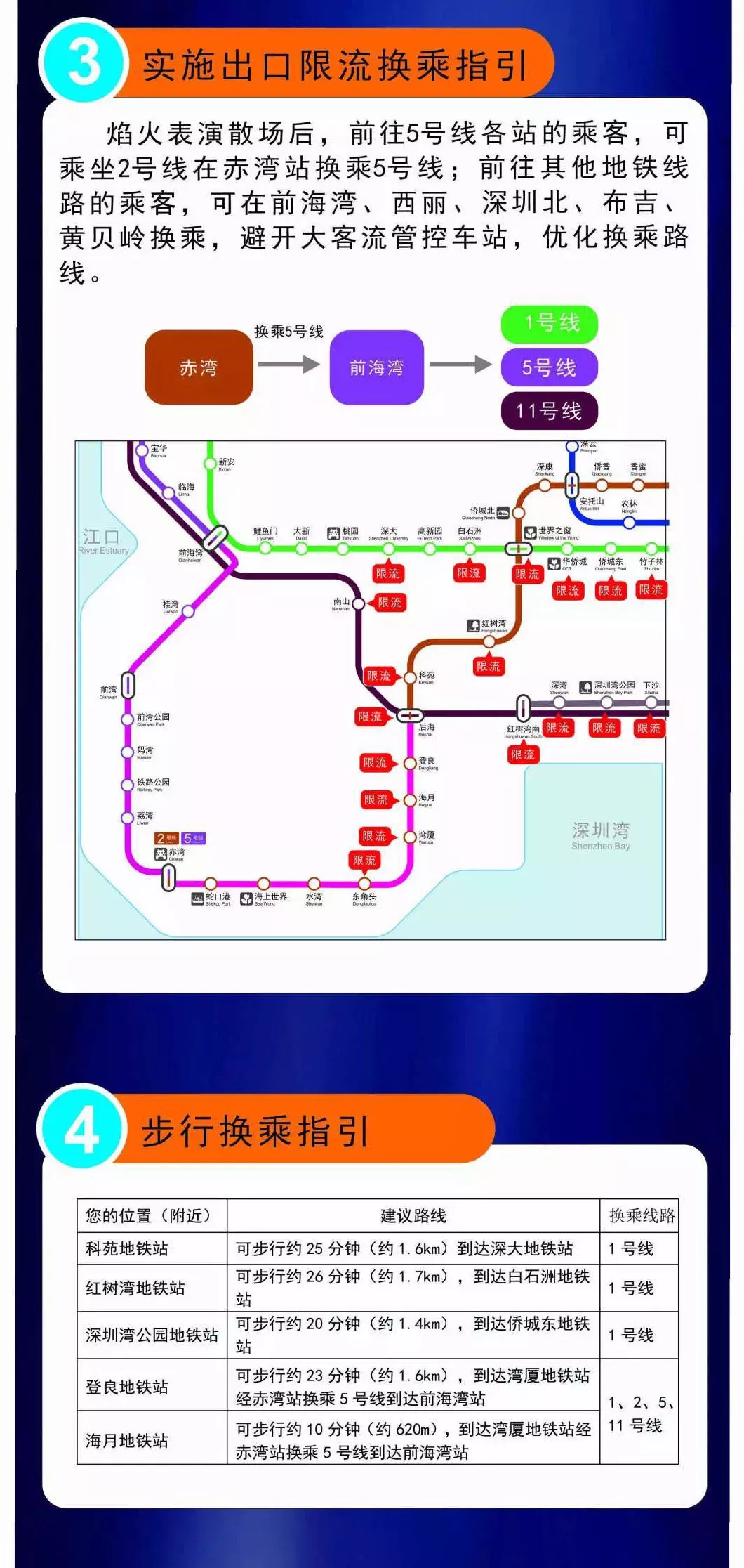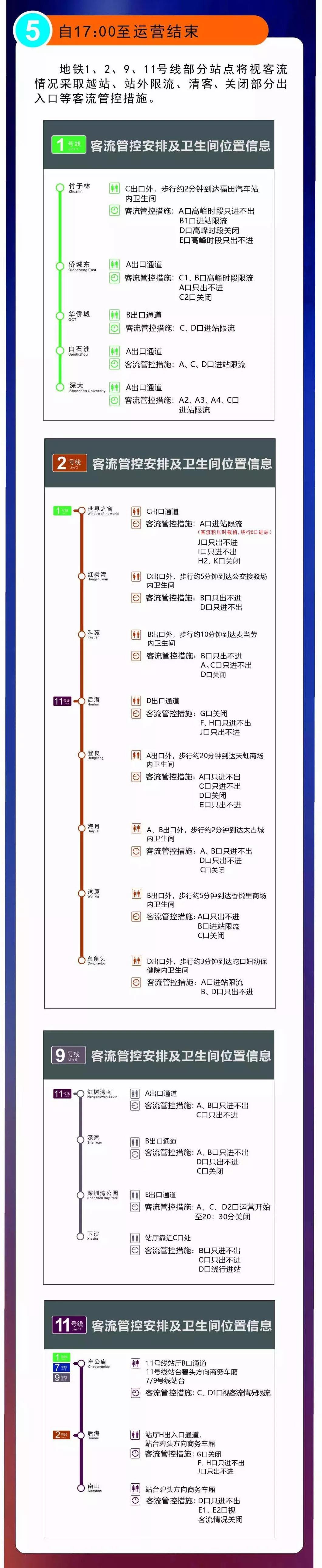 2號線世界之窗、科苑、灣廈站,11號線南山站、車公廟站將視客流情況采取列車清客。