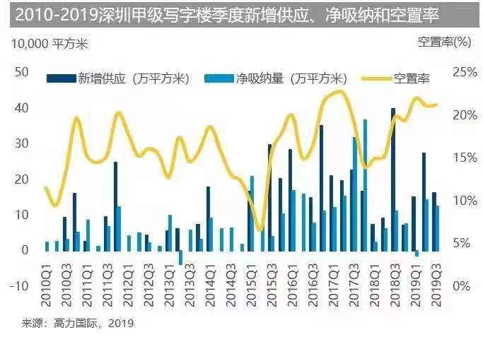 2019年第三季度,深圳甲級(jí)寫字樓市場(chǎng)保持較為健康和活躍的態(tài)勢(shì),本季度內(nèi)市場(chǎng)凈吸納量表現(xiàn)良好,且新增供應(yīng)面積相比上一季度有所下降,空置率也穩(wěn)定在21.1%。但是,我們認(rèn)為空置率在第四季度會(huì)再次上升且持續(xù)到2020年,取決于計(jì)劃中的新增供應(yīng)完工入市情況。