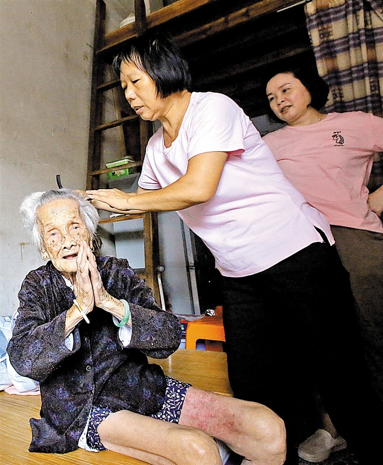 陳汝金老人喜歡打本地花牌,打到了99歲,后來(lái)腰部退化,不能久坐,她才沒(méi)有再打花牌。吃飯方面,陳汝金也有自己的主張,不求好不求貴,簡(jiǎn)簡(jiǎn)單單活到老,“外婆以前是生產(chǎn)隊(duì)的炊事員,直到去年她還能自己做飯呢。”在文小姐看來(lái),如此長(zhǎng)壽的外婆也沒(méi)有特別的養(yǎng)生之道,“保持好心態(tài),順其自然就是最長(zhǎng)壽的秘方?!?/p>