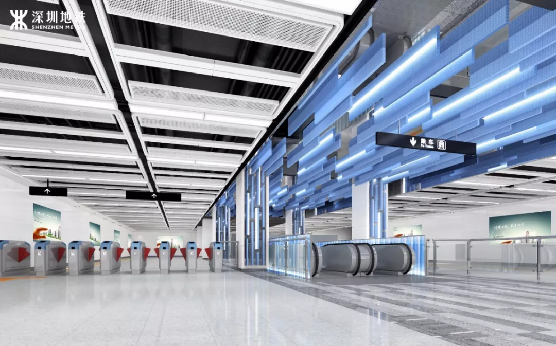 綜合考慮前海地下漫行系統(tǒng),在樓梯口部重點(diǎn)利用智慧科技及燈光設(shè)計(jì),表現(xiàn)前海特色,使之成為視覺焦點(diǎn),突出垂直交通樞紐,達(dá)到高效交通目的。
