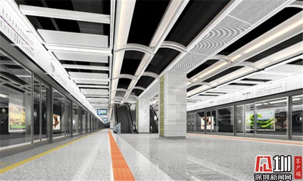 本線路標(biāo)準站包括前灣站、荔林站、南油西站、南山書城站、深大南站、高新南站,標(biāo)準站設(shè)計方案天花采用“一步一高,發(fā)展騰飛”的疊級造型,充分結(jié)合車站的綜合管線設(shè)計,利用車站空間特點,在空間上重點體現(xiàn)個性區(qū),保證空間的整體性,讓空間更為舒展、開闊。
