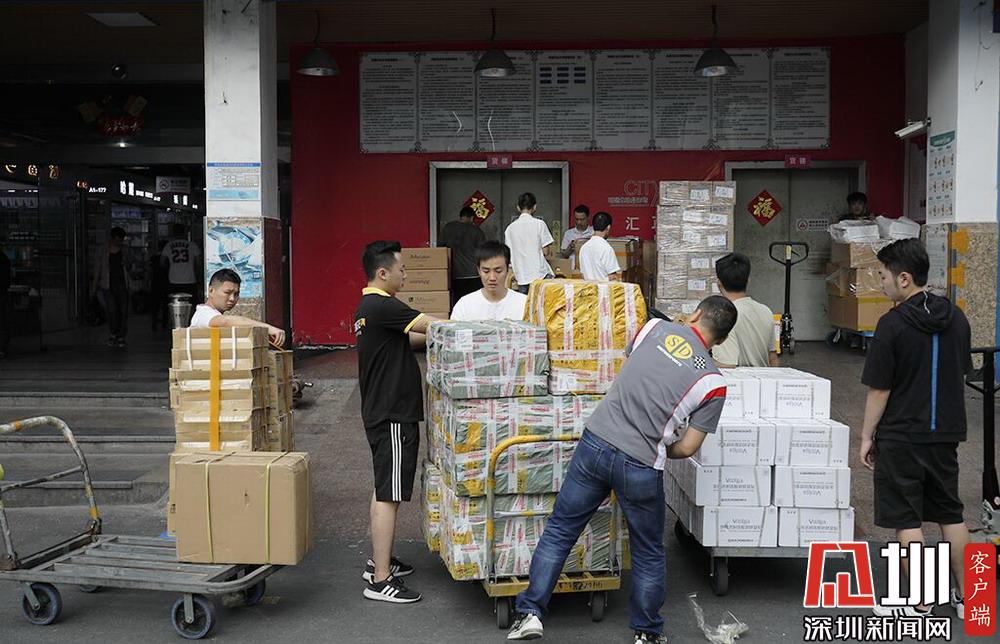 明通數(shù)碼城門口搬貨物的快遞小哥們。